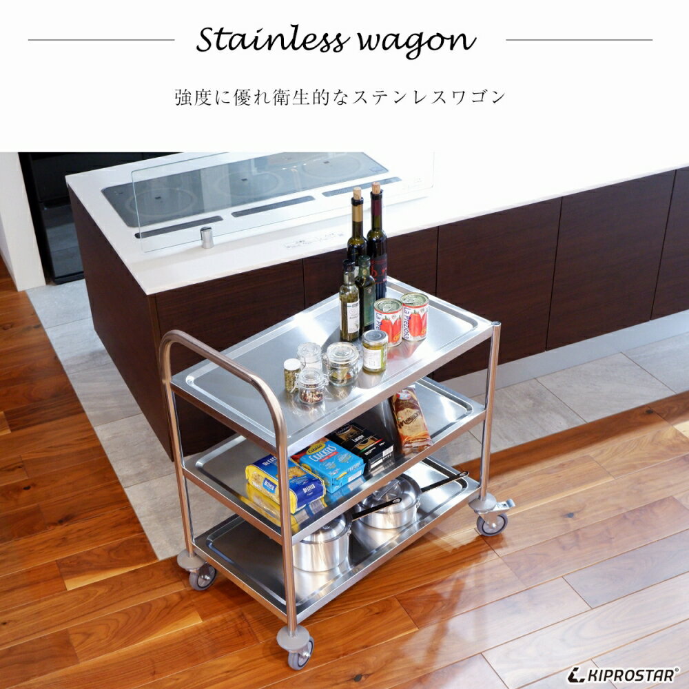 ステンレス製なので掃除が簡単な ワゴン 業務用 !!強度に優れ丈夫な キッチン ワゴン は調理場、厨房などで大活躍プロ仕様の ワゴン !食卓周りの小物がたっぷり収納できる ステンレス キッチン ワゴン です。