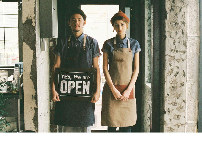 高級キャンバス素材とリアルカウレザーで製作したスタイリッシュなエプロン クロスデザインのバックストラップもポイントのユニークなアイテム ナチュラルなのにスタイリッシュな印象の高級感のある1着です。